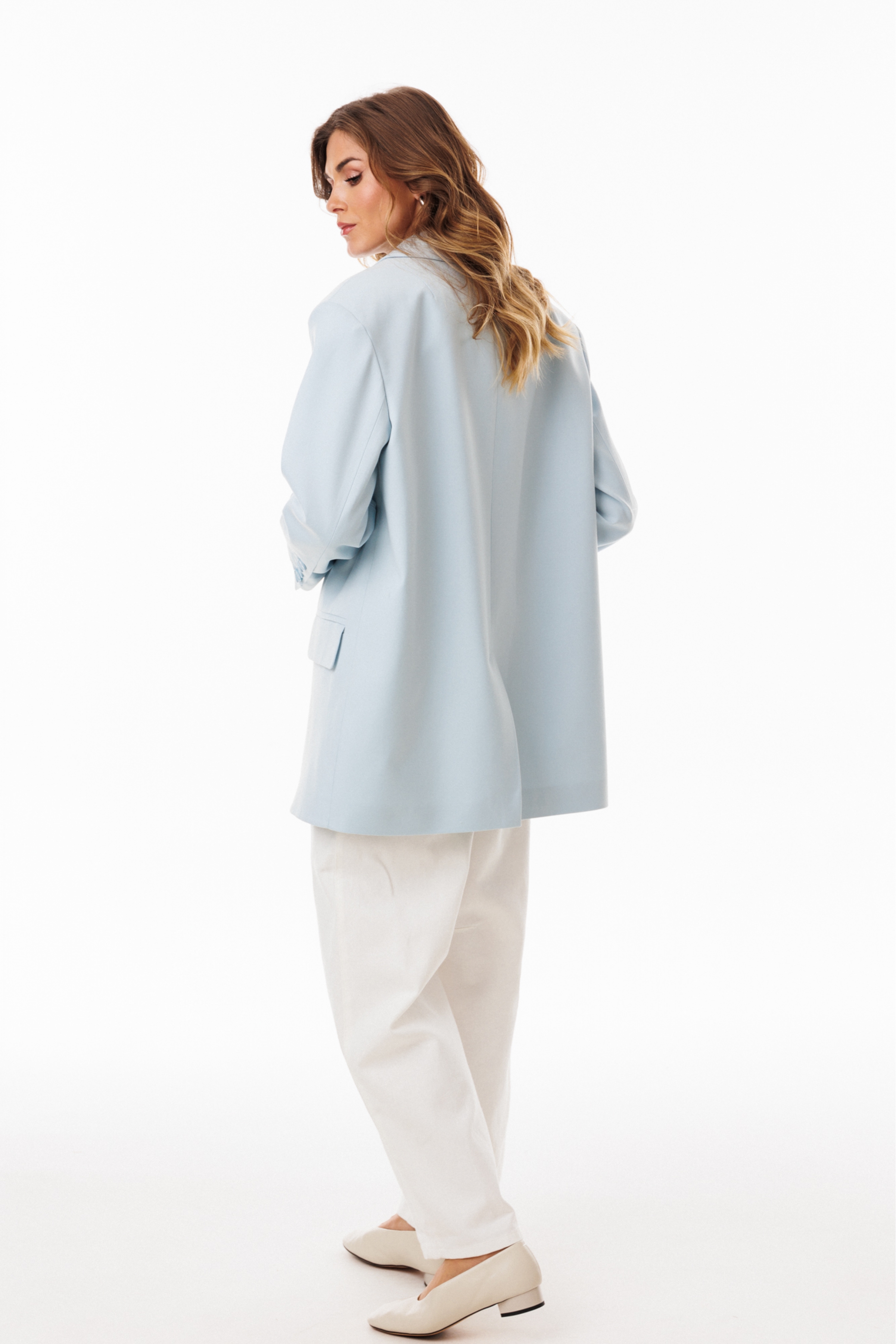 Джинсы-багги выполнены из джинса. Брюки на притачном поясе, длиной до линии щиколотки, расширенные от бедер и слегка зауженные к низу. Спереди боковые карманы с фигурным входом. Застежка на пуговицу и металлическую молнию с гульфиком. На задних частях кокетки и накладные карманы. На передней и задней части коленные вытачки.